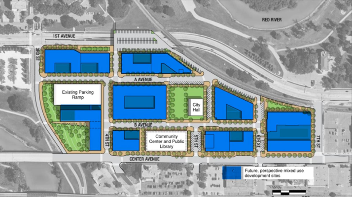 The City is moving forward with a master planned redevelopment site around Moorhead City Hall (pictured below). The City has determined that remaining in the current City Hall building is the best use of that building to support of the overall vision of that redevelopment.