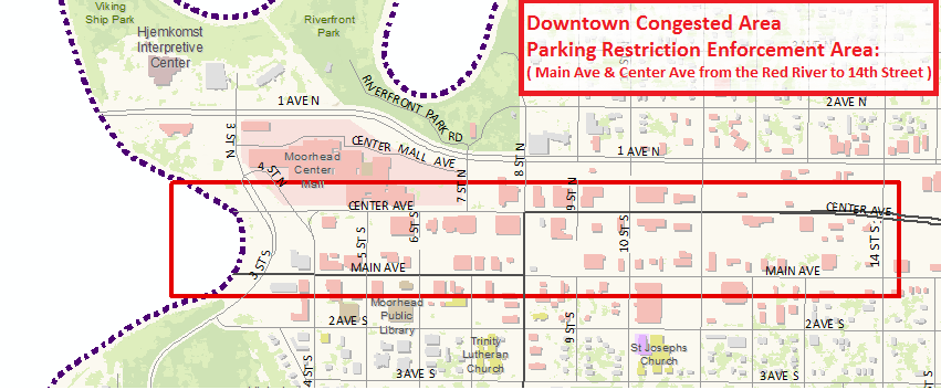 - Three-hour Parking Zones: On-Street parking on certain streets close to Concordia College and Minnesota State University Moorhead will be limited to 3 hours at a time from 7 am to 5 pm, Monday through Friday, from August 15 to May 15 each year. Signs are posted on each block of streets with 3-hour parking and/or other applicable restrictions. Routine college and university traffic should be directed to campus parking lots whenever possible. You must interrupt this 3 hour period by moving your vehicle a distance of at least one city block.