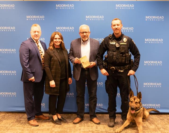 Roger is a lifelong Moorhead resident. He graduated from the Moorhead High School and Minnesota State University-Moorhead and has over forty years of business experience—building custom homes in Moorhead and creating several private businesses, most recently, Farmstead Senior Living in south Moorhead, providing healthcare services and retirement living. In all his business ventures, he’s shown his dedication to the Moorhead community. His MoorHeart recognition is based on something a little different and very special. Roger Erickson has been a gracious and unsolicited supporter of the local law enforcement K9 programs. His love for dogs and his community has driven him to support local law enforcement by providing funding for purchasing four dogs for local law enforcement departments, including two for the Moorhead Police Department. Without his support, local government funds would be required to purchase the animals, at a cost of $10,000 to $15,000 each. Chief Shannon Monroe stated, "Police canines bring amazing skills to law enforcement and are critical to our work. They are also costly to obtain, train, and equip. The generous support provided by Roger Erickson has assisted the City of Moorhead in keeping our canine program running. Roger loves dogs, having his own nearby all the time, and we appreciate his giving back to our community through supporting the canine program.” |