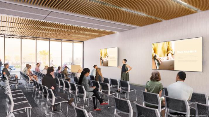 - Multiple amenities under one roof: The design work focused on creating spaces and places for everyone. The second floor is shaping up to be the fun/active zone while the first floor focuses on library/gathering/inspiration space.