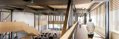 The library incorporates sustainable principles for efficient, healthy environments, ensuring a space where the community can work, play, and collaborate together for generations to come.